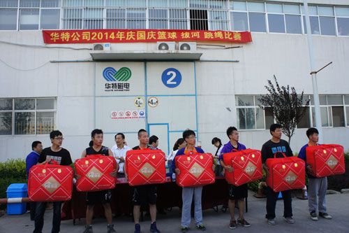 9月30日下午,為慶祝建國六十五周年,公司組織開展了大跳繩、籃球和拔河比賽。比賽中,參賽人員積極發(fā)揮,氣氛活躍,賽出了水平、賽出了風(fēng)格。比賽結(jié)束后,公司領(lǐng)導(dǎo)先后為優(yōu)勝者頒發(fā)了獎品。通過比賽,陶冶了廣大員工的思想情操,激發(fā)了大家的工作熱情。