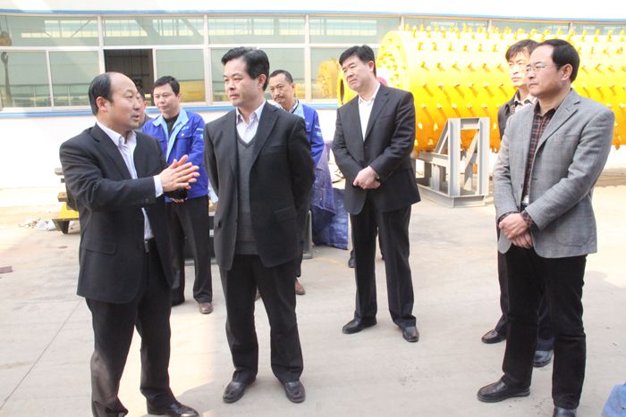 顧建華書記首先來到新工業園區,實地察看了施工現場,詢問了工作進展。隨后,深入到生產一線,對公司創新產品進行了觀摩,并對新產品的創新點、技術優勢、市場前景等進行了解。王兆連總裁向顧書記等領導介紹了有關創新產品的性能特點和經濟下行條件下的技術優勢和能夠產生的社會效益。顧書記等領導先后對公司新開發的提精降渣磁選機、棒磨機、球磨機生產線等進行了深入了解和調研。