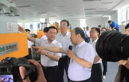 劉廳長一行在濰坊市副市長李平、市科技局局長張寶勝、臨朐縣委副書記、縣長劉裕斌等領導陪同下參觀華特生產現場